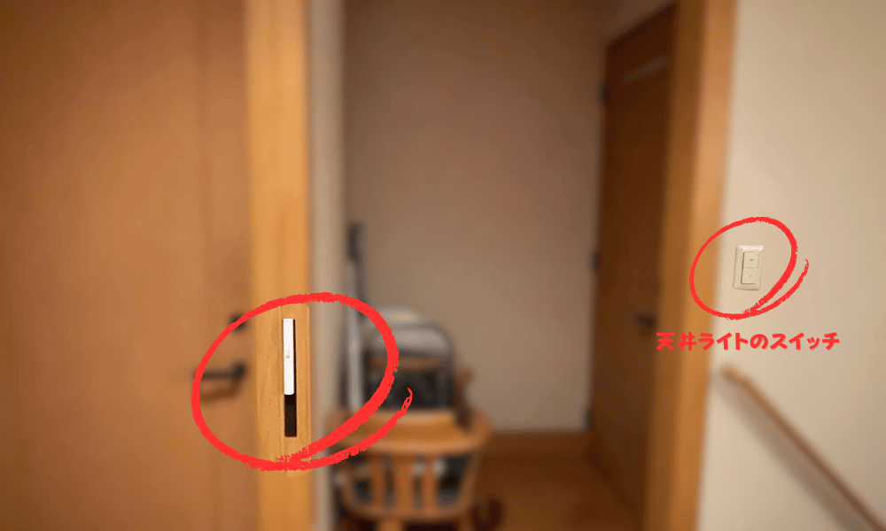 また、廊下に照明があったとしても、介護用ベッドを設置するために元来寝室ではない部屋を寝室として使用しているケースでは、手元にスイッチがないことも珍しくありません。